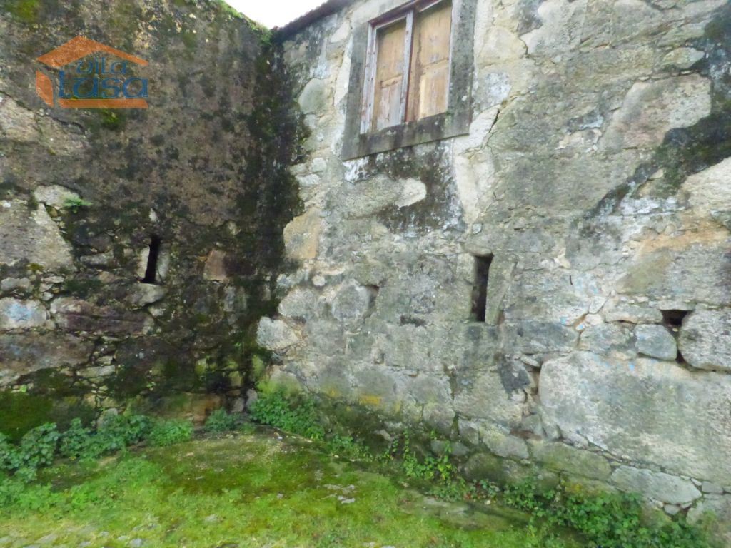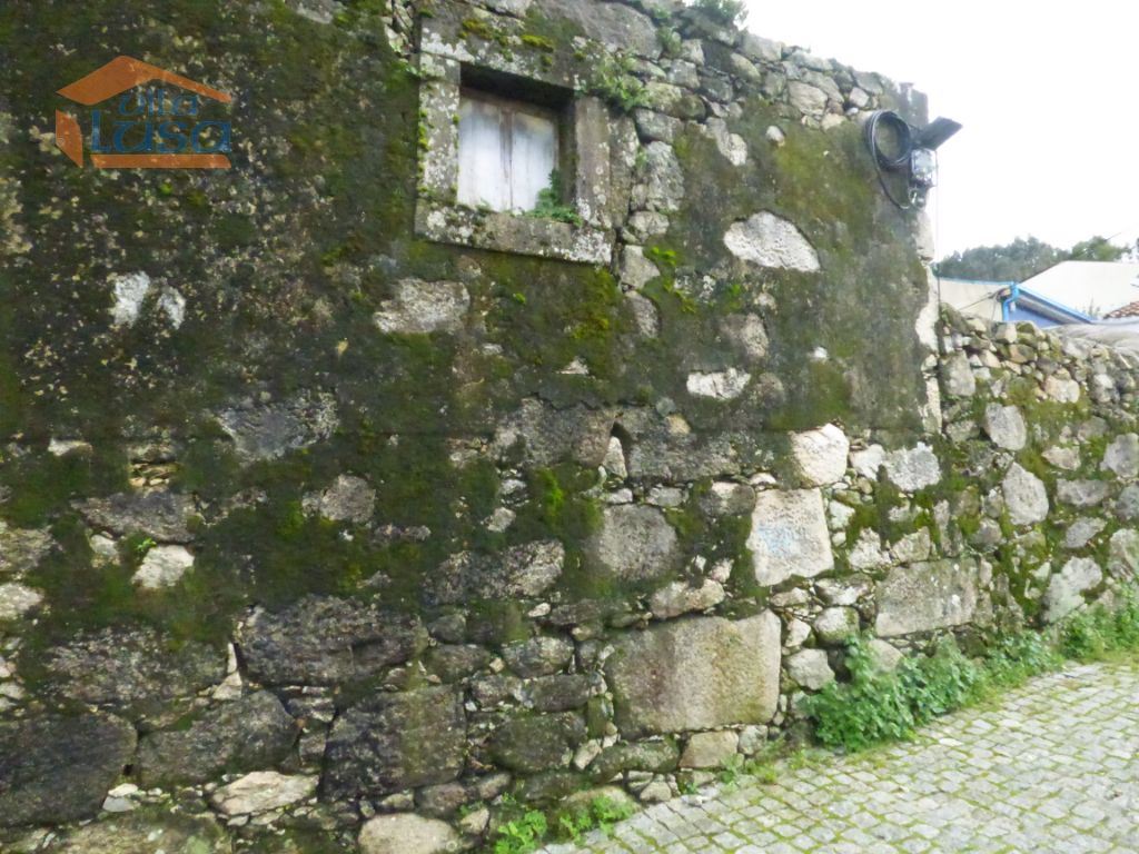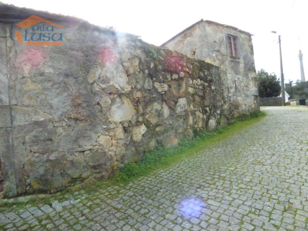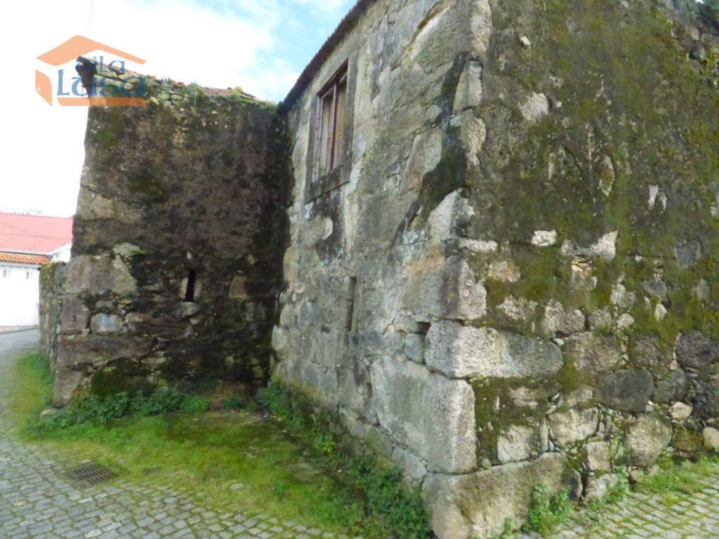 Casas de construção antiga e terreno murado em granito com altura superior a 3 m.