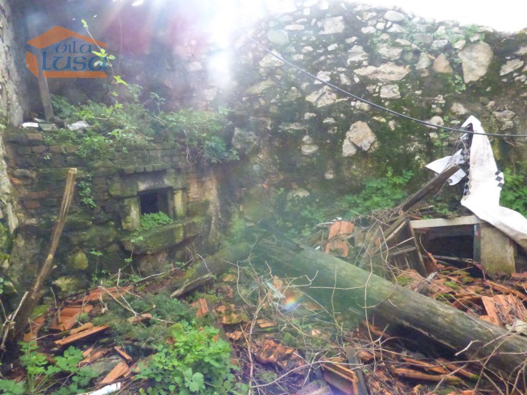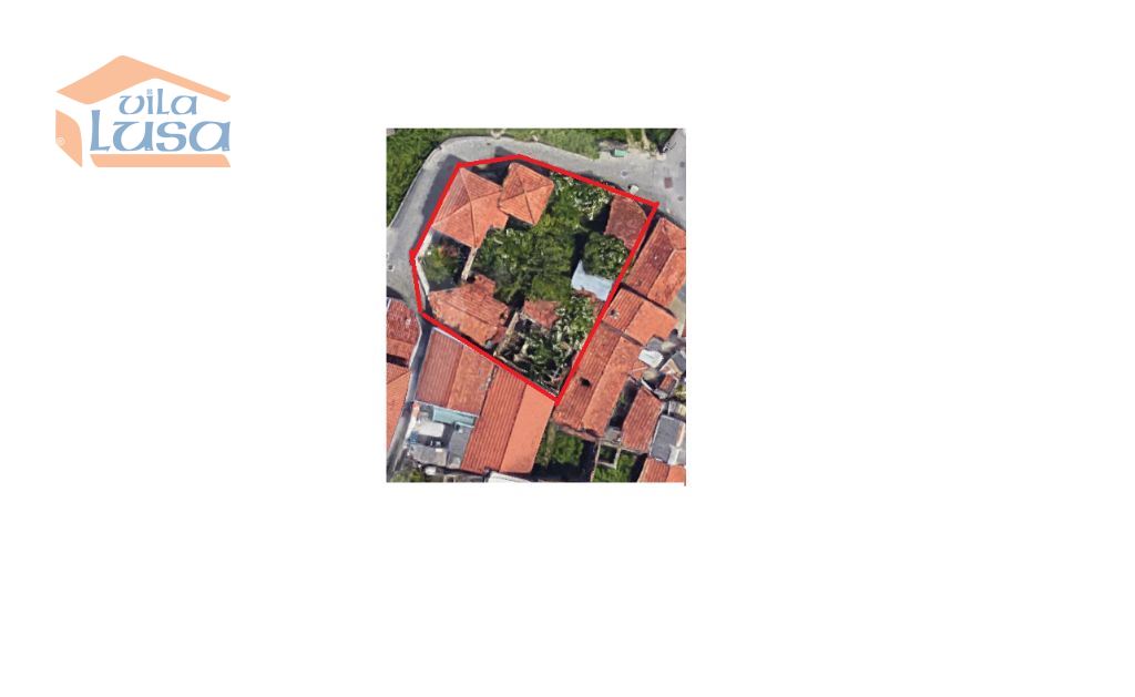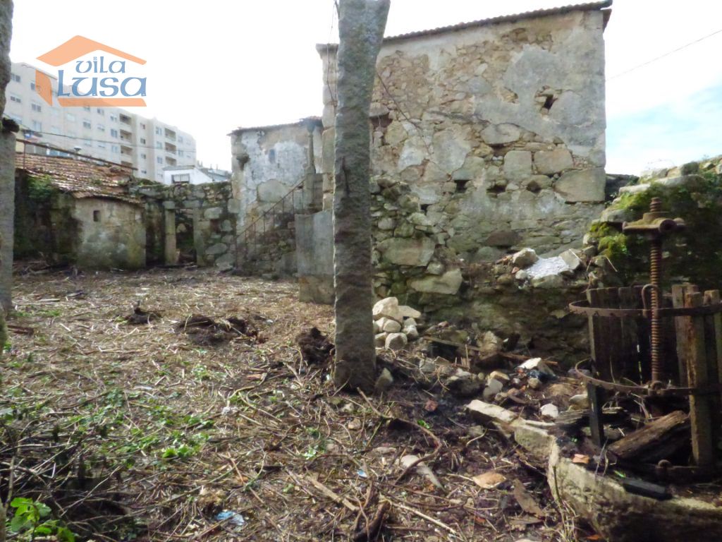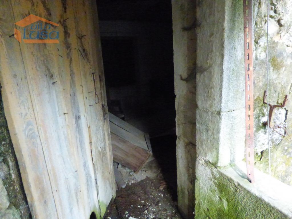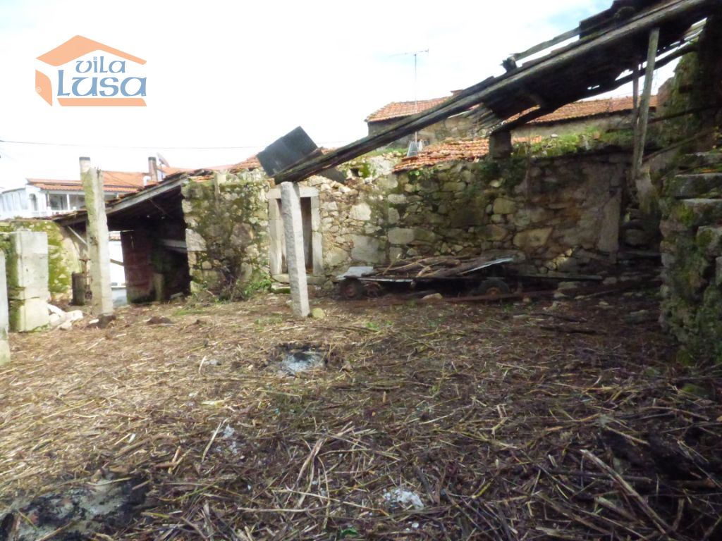 Casas de construção antiga e terreno murado em granito com altura superior a 3 m.