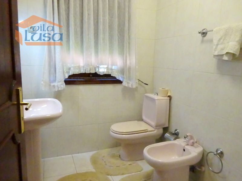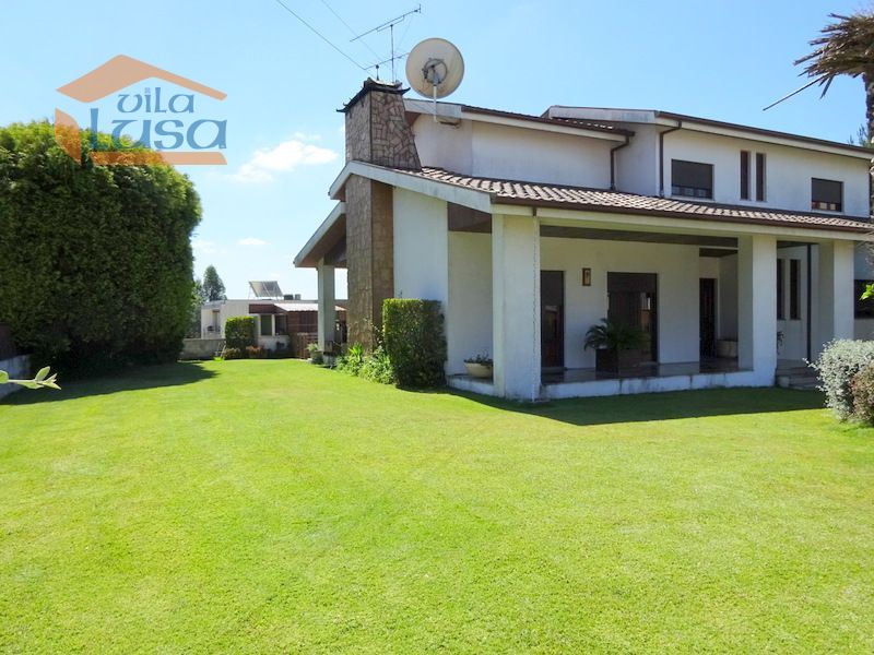 Casa de 2 pisos com +/- 600 m2 de jardim relvado a toda a volta da casa, rega automática, Furo de água, garagem fechada exterior para 2 viaturas, anexos, canis, lavandaria e wc de serviço.