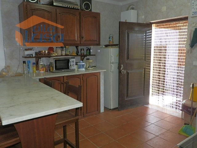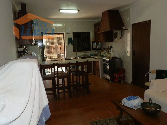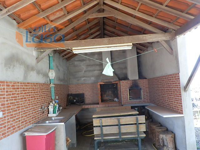 Pela cozinha, tem-se acesso à parte de trás da casa onde existe um alpendre com mesa para refeições, bancada, lava-loiças churrasqueira e um forno a lenha.
