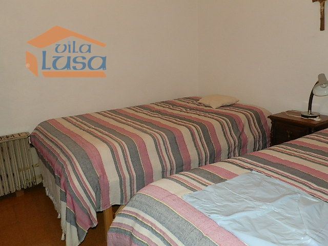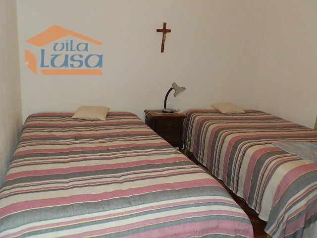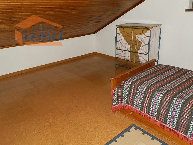 A propriedade está toda vedada e nela encontra várias árvores de fruta e uma construção de apoio agrícola transformada num edifício de dois pisos com 3 quartos, sendo que no piso térreo são 2 bons quartos com roupeiros embutidos, um WC completo com luz directa, uma ampla sala e cozinha “kitchenette” e um hall de entrada que também dá acesso ao primeiro andar onde existe uma sala ampla, 1 quarto, 1 WC completo e esconsos “aproveitamento das laterais do telhado para arrumos”.